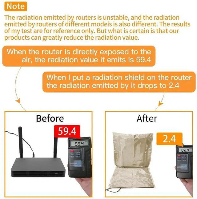 WiFi Router Cover, EMF Shielding Router Cover - Dual-Sided Open WiFi Radiation Blocker with 95% Protection, Universal Fit for Most Routers ( 13.8" x 15.7" )"For families with children and EHS sufferers, our cover creates a 3-layer defense: Silver-ion barrier blocks 95% RF waves Faraday cage effect redirects residual emissions Aerodynamic design prevents router overheatingScientifically EMF Protection Lab-tested silver fiber fabric blocks 95% of RF/EMF radiation ( 2.4GH z-5GHz frequency range), creating a safer environment for sensitive individuals.