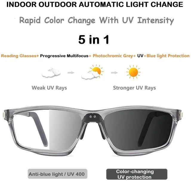 • Blue Light & UV400 Blocking: These progressive reading glasses are equipped with high definition resin lenses with anti-blue light and UV400 coating, which filters out harmful blue light, reduces screen glare, and relieves eye fatigue, dryness, and sleep disorders caused by prolonged screen use.They also effectively block UVA and UVB rays, preventing possible damage from sun e