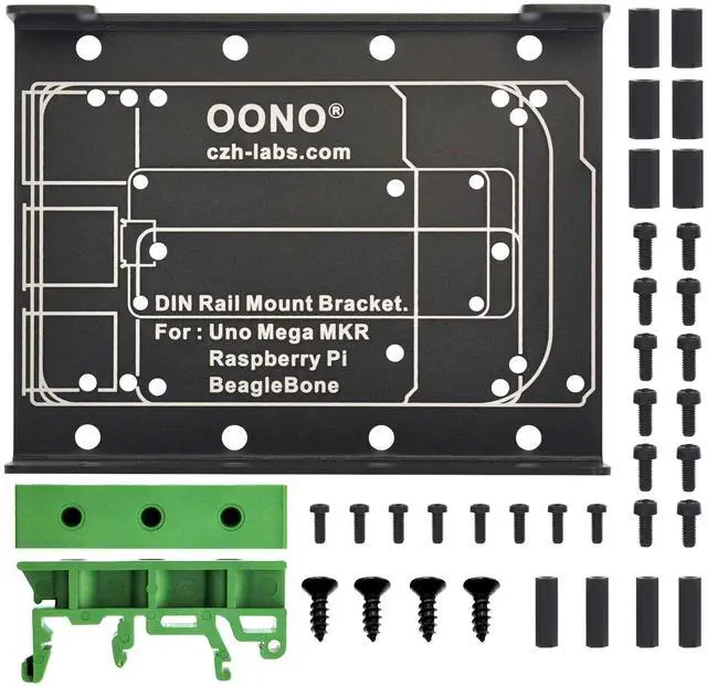 ^^ Package included: 1x Aluminum bracket, 1 pair DIN rail adapter feed and mount screws, 6x M 2.5 x10mm standoffs, 12x M 2.5 x6 pan head screws, 4x M2x12mm standoffs and 8x M2x6mm screws (for Arduino MKR).
