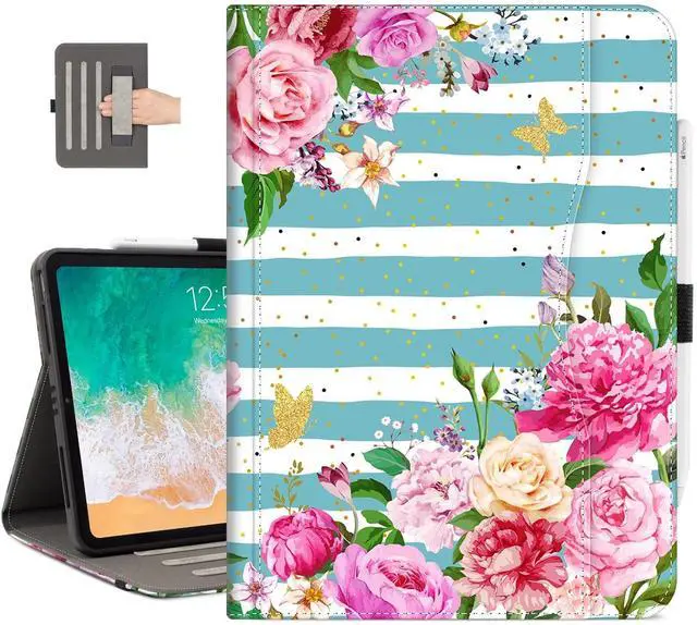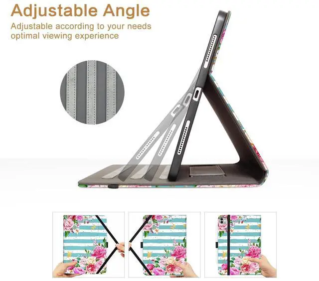 Hand Strap]: With three anti-slip stripes design for the iPad to sit in to stabilize it, never slips when you have it in a tilting position. Also the hand strap beside the stripes enables you to hold it more stable when the iPad stays upright. Adjustable angle design, Provide you comfortable viewing and typing experiences. You can find the perfect viewing angle for any situation, whether it's work, entertainment, or browsing. Experience hands-free convenience like never before ^^ [Smart