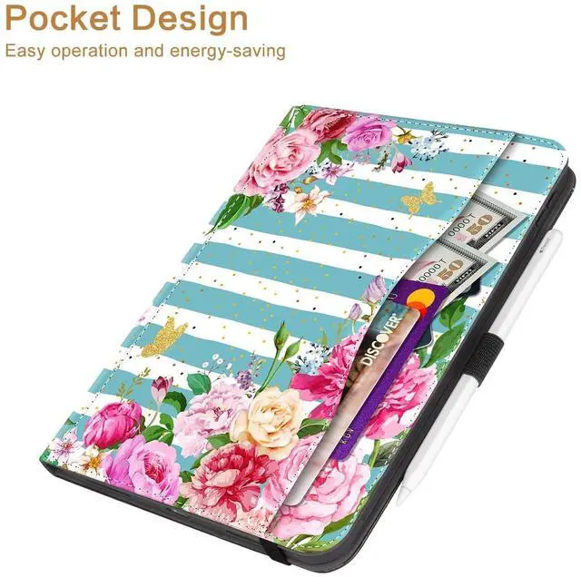 Auto Sleep/Wake & Pocket]: Built-in magnetic strip ensure it automatically wakes your iPad when opened and puts it to sleep when closed to save battery life. The pocket on the front for you to store your cards, pics and notes ^^ [Full