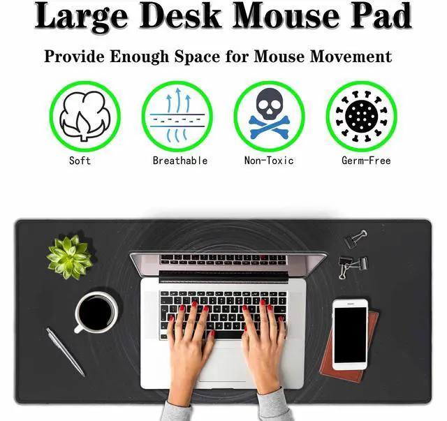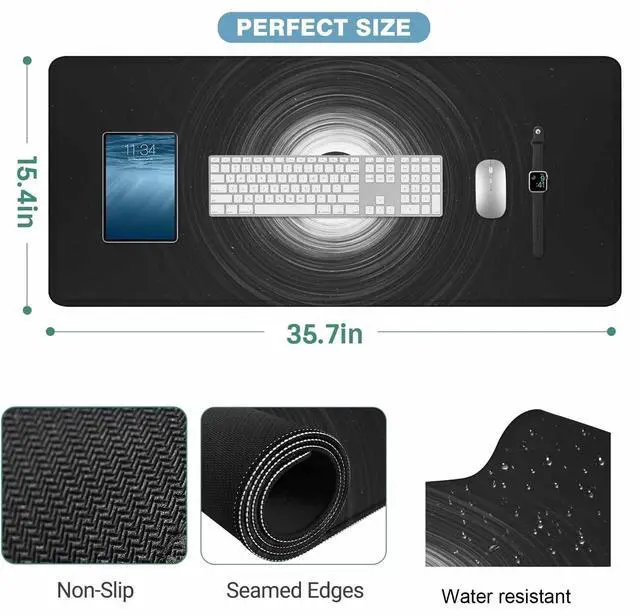 • 35.4"x15.7"x0.11" Extended Size Desk Mat :Large mouse pad design makes it provide plenty of room to place your mouse,keyboard and other desk items.protecting your desk while you playing games or working.