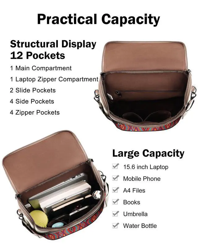 ^^ Shoulder Backpack: This backpack laptop bag for women with a detachable strap can be converted into a shoulder backpack or handbag to meet the needs of different occasions. So the leather laptop backpack with laptop sleeve suitable for a variety of occasions, such as shopping, work, travel, dating, camping, dancing or hiking, for 2-3 days business trip.