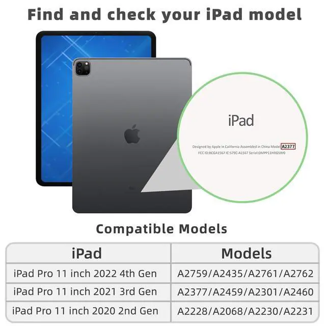 Compatible for: a case for 11 inch iPad Pro 2022/2021/2020(Model A2759/A2435/A2761/A2762/A2228/A2231/A2068/A2230/A2377/A2459/A2301/A2460 only).
