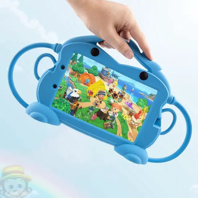 CHINFAI original design Double-faced monkey case for Samsung Galaxy Tab A 8.0 2019, Model SM-T290/T295 ^^ Thick silicone body, Soft & Great touch feeling; Food grade BPA-free materials that ensure your children's safety ^^ Fun to use, holding handle (ears), carrying handle (head), take out hands from the bottom feet, tie them around the headrest for watching on the go ^^ Grid structure - Shock absorbing & drop proof design, the increased thickness around the edges for ultra protection ^^ Self stand and foldable adjustable kickstand provide different viewing angles to meet your needs, precise cut out to accommodate the buttons, speaker, and power button