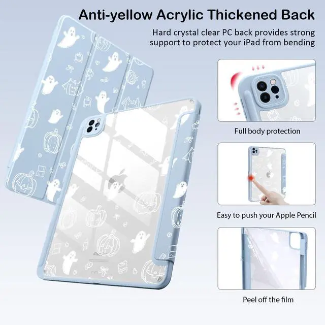 Note: Due to different monitors, there may be a little error in the color. Why choose this cute iPad case? -This is a leather iPad cover case with Apple Pencil holder, support auto sleep/wake. -This protective case has a built-in Apple Pencil holder, grabbing your Apple Pencil effortlessly whenever you want, convenient for your study and work. -This cover can easily change the angle. The 65 video mode can act as a screen stand, and the 30 input mode acts as a keyboard stand, which can meet your viewing and typing needs. Transparent back shell support DIY, you can put photo or sticker you like in the back. -This iPad case design with exquisite exclusive design patterns to ensure that the iPad shell you choose is unique. -We have professional high-tech printing equipment and technology to ensure that the printed patterns are clear and beautiful, and are not easy to fall off. -This is also suitable as a present for family or friend. It is a very creative and practical present for women girls.
