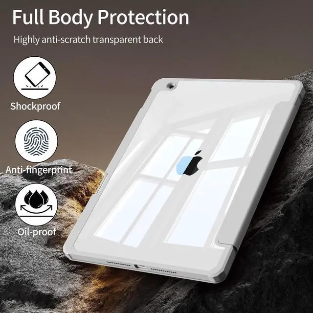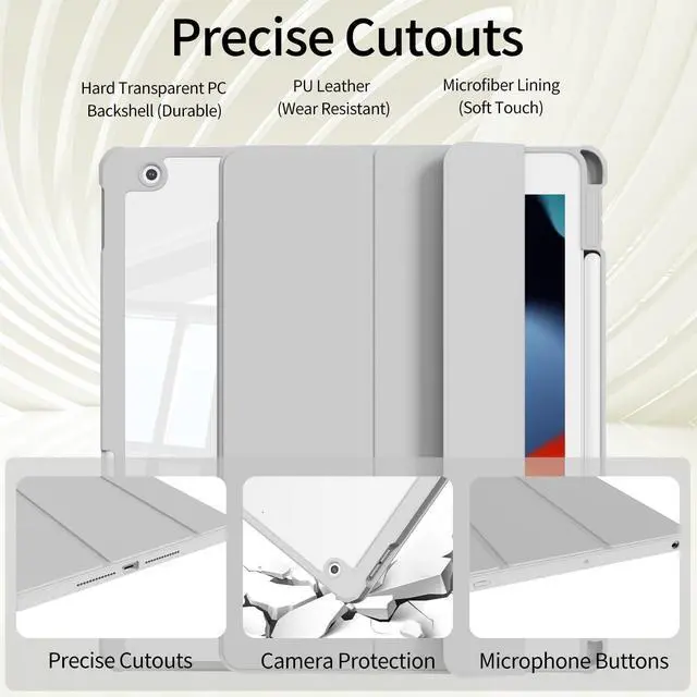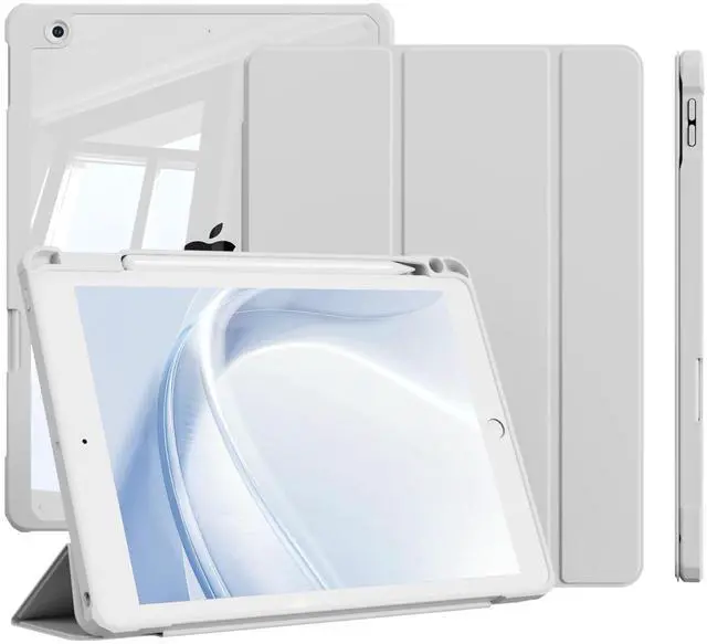 KENKE Smart Case for iPad 9th Generation 2021/iPad 8th Generation 2020/iPad 7th Gen 2019 10.2 inch with Pencil Holder, Slim Clear Hard PC BackTPU Shockproof Frame Cover for iPad 9/8/7, Gray