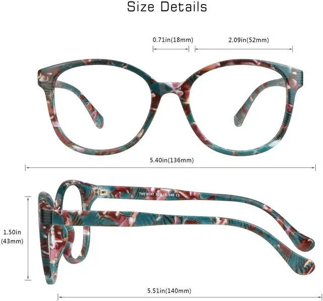Material: Frame TR90, Lens Resin. Oval shaped frames with a floral pattern, crafted from lightweight yet durable TR90 ^^
