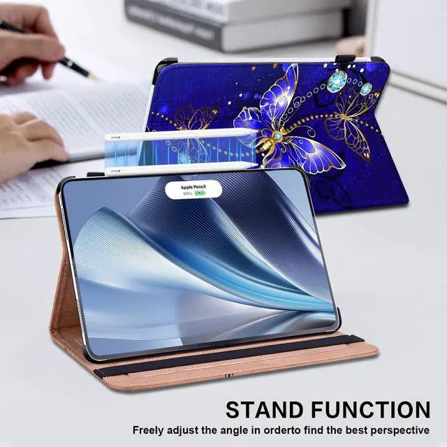 • [Multi-card slot]: Built-in card slots can hold credit cards, ID cards and even a small amount of change. Extremely stable when using the stand function. There is a pen sleeve on the side of the protective cover for placing the pen.