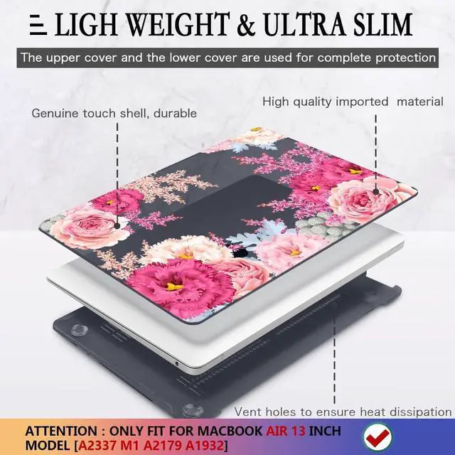 Only Compatible with MacBook Air 13 inch M1 Model A2337/ A2179/ A1932 Release 2018-2021. ^^ Please kindly check the model number "AXXXX" on the back of the laptop before purchase. ^^ NO Cut Out design, comprehensive protection for laptops.