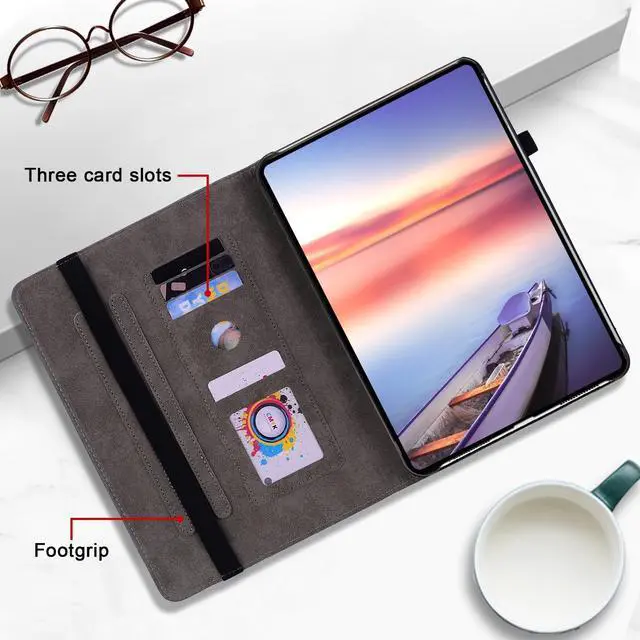 • High qualityGood quality with PU synthetic leather exterior and non-slip inner lining. Sturdy materials provide full protection for your tablet. It is closed with an elastic band, which makes the tablet firmer when closed, and protects the screen and the cards inside from falling out.