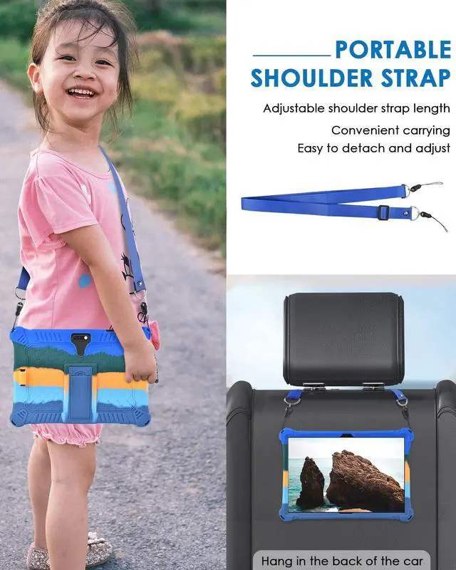 Case with Strap: WECOOL 10.1 silicone case comes with a foldable stand. You can adjust the different angles at will, convenient to typing and watching videos ^^