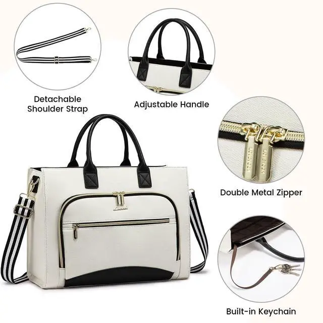 ^^ Versatility Meets Convenience: Crafted for versatility, this laptop tote bag effortlessly transitions from a professional work bag for women to a chic shopping bag or a practical teacher bag. The detachable and adjustable shoulder strap adds to your comfort and style, allowing you to carry your essentials with ease, no matter where you go.
