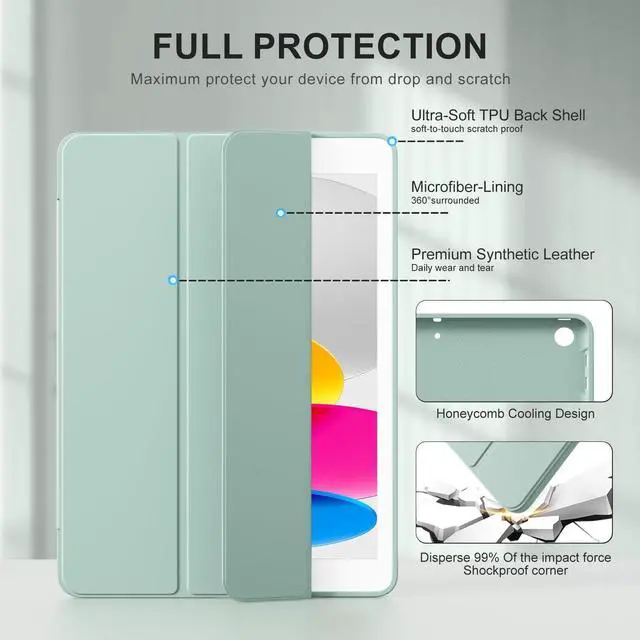 Full Protection: High-quality leather hard front cover with soft TPU back cover and soft microfiber interior, slim and lightweight design and exquisite craftsmanship, silky touch, bring 360 all-round protection to your iPad