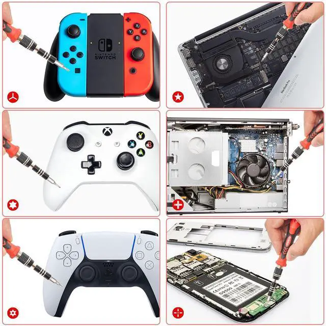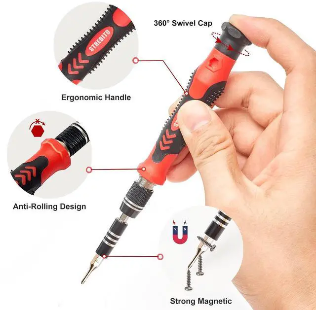 • Variety & VersatilitySTREBITO 124 electronic screwdriver set includes 101 precision bits, complete with every driver head you'll need to repair any electronics, such as Apple & Android mobile phone, PC, laptop, iPhone, Mac, PlayStation 5/4/3, Xbox series game console & controller, tablet, iPad, RC toys, watch, eyeglass, etc. This is the do-everything toolkit every DIYer, fixer, IT geek, professional tech and hobbyist needs, also a decent gift for your family, friends, colleagues, etc