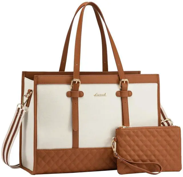 ^^ USE IN MULTIPLE SCENARIOS Our laptop tote bag is versatile enough to be used for various occasions, whether you're heading to the office, attending meetings, or going on a business trip. Ideal as a laptop tote, teacher tote bag, work bag, travel bag, or office business briefcase. Perfect gift for family, friends, and yourself. ^^ STYLISH AND CHIC DESIGN Our laptop tote bag combines the timeless elegance of leather with the trendy appeal of canvas. The combination of these materials creates a visually striking. Compared to traditional leather laptop bags, canvas laptop tote displays a youthful, fashionable, and relaxed style.