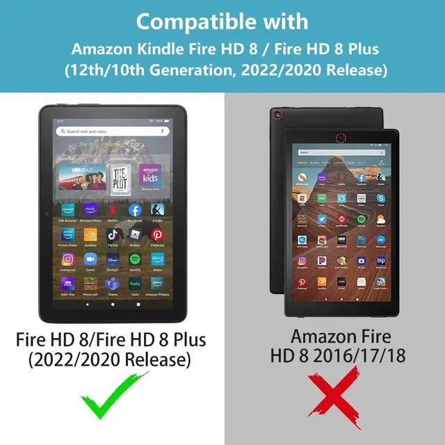 Compatibility: Specifically designed for All-New kindle Fire HD 8 / Fire HD 8 Plus Tablet (12th/10th Generation, 2022/2020 Release). Not Compatible with kindle fire HD 8 tablet (8th/7th/6th Generation, 2018/2017/2016 Release), Please Check Your Device Model Before Purchase.
