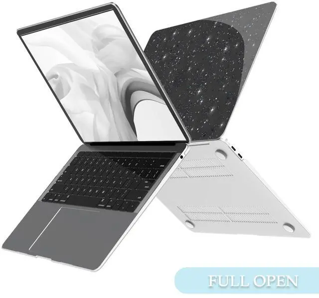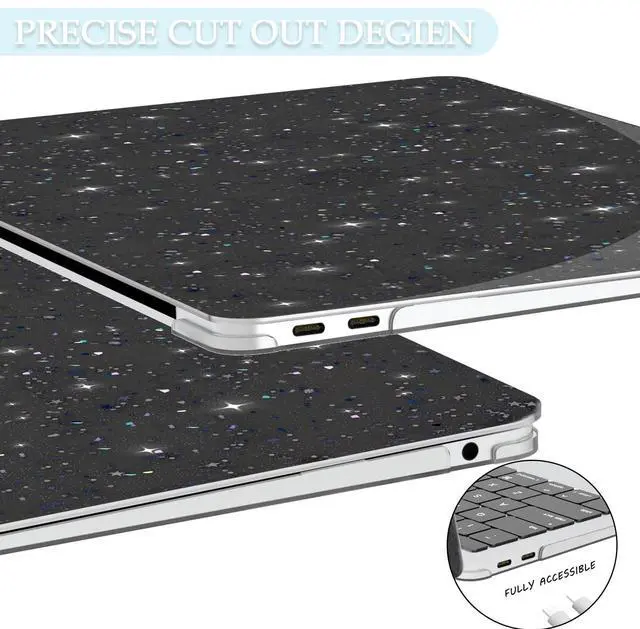 No bulk, just reliable defense! ^^ Perfect Cutouts & Easy to InstallPrecise openings for all ports, no restriction when you open the laptop more than 90. Four small rubber mats can raise and stable your laptop for more good working. ^^ Ideal Gift with 1-Year WarrantyPackaged with 2 keyboard covers, this sparkly macbook air case is a hit for birthdays, Christmas, or Valentine's Day. Backed by our "12-month warranty" love it or well replace it!