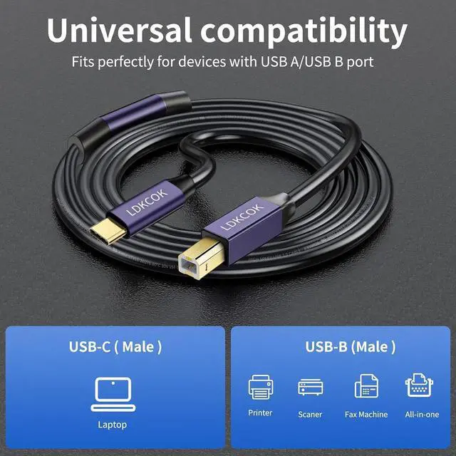 Ideal Printer Scanner Cable: LDKCOK USB 2.0 printer cable is ideal for connecting your scanner, printer, server, hard drive, camera, piano, and other USB b devices to a laptop, computer (Mac/PC), or other USB-enabled devices for data transfer ^^