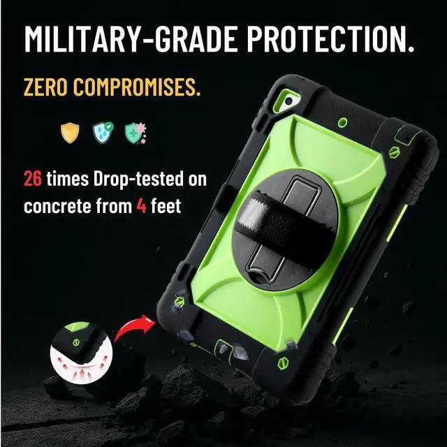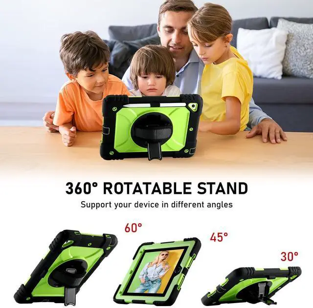 Portable Shoulder Strap: Keep your Apple Pencil (not included) secure and easily accessible in the integrated holder. The adjustable and removable shoulder strap allows you to carry your iPad hands-free, perfect for travel, commuting, and outdoor adventures. Easily attach the strap to any two corner holes to hang it on the back seat of a car for child entertainment during journeys. ^^ Heavy-Duty Rugged Protection with