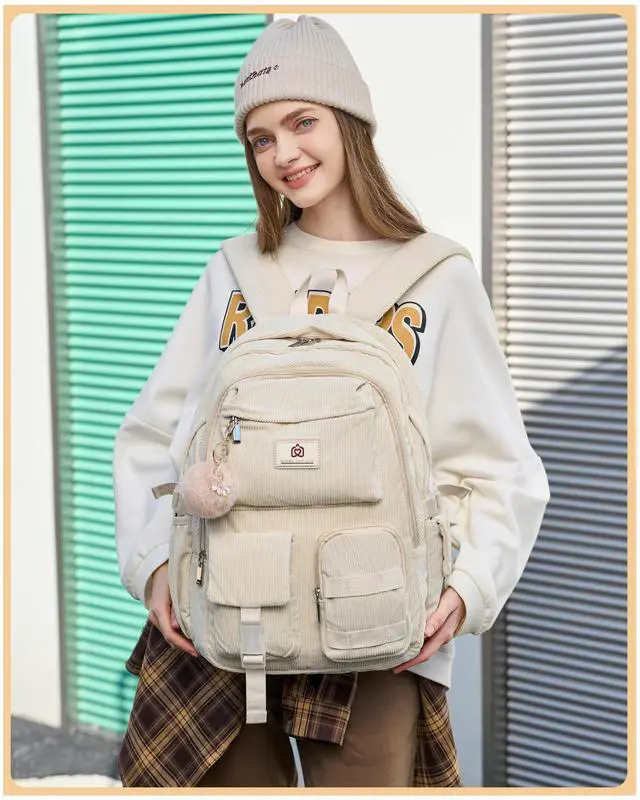 College-Skin Friendly Material: The campus book bag is made of ultra light weight, super soft and high density corduroy fabric, which will feature skin-friendly touch. The metal zippers closure are used by the premium quality zippers to ensure the long-lasting usage ^^ Backpacks for
