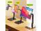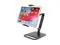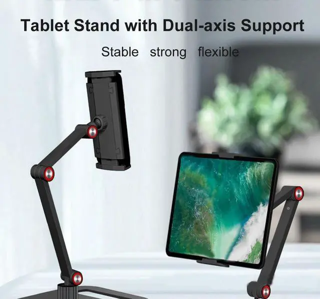 Adjustable Design: Two adjustable support arms and with a 360-degree swivel ball head that meets any viewing angles. The ergonomic design provide you a most comfortable viewing angles and eye-level height. which is perfect for zoom meeting, watching videos, viewing photos, reading, typing, video recording, playing game. ^^ The silicone pad inside clamp and rubber pads on the bottom provide full protection for your device from any scratches and slide. ^^ The Tablet Stand has sturdy and thickened alloy long arm, reinforced thickened and widened elastic silicone clip, heavyweight thickened base with silicone pads that makes it to support a Heavy-duty tablets. ^^ Installation is simple and comes with a small hex wrench. Storage is simple and the support arms can be folded up when not in use.