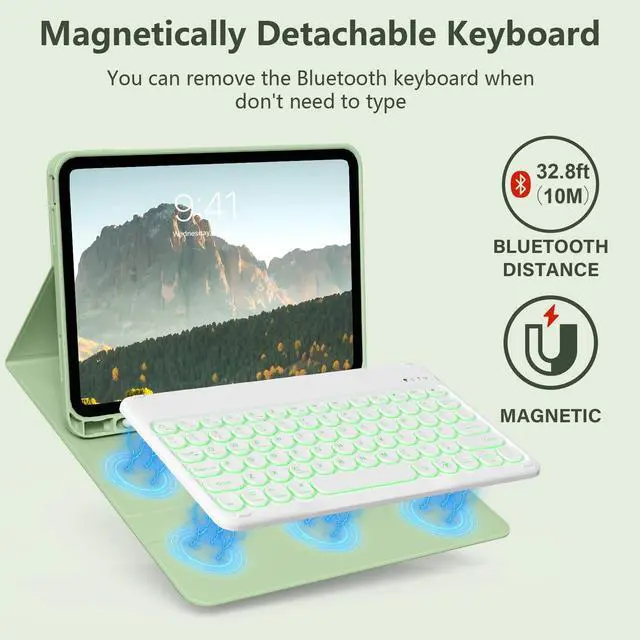 Wireless Backlit Keyboard: the intelligent keyboard case lets you switch between a lightweight laptop and tablet. Equipped with multimedia and other useful shortcuts, this detachable wireless keyboard provides you with the ultimate convenience ^^ JKSML Keyboard Case for iPad 10th