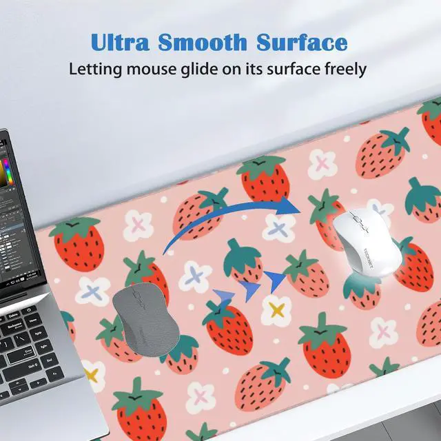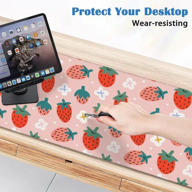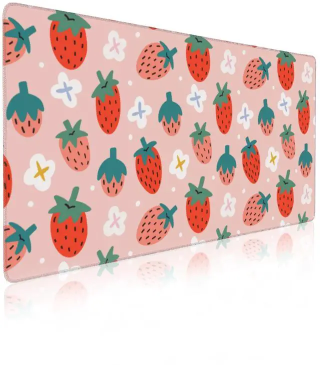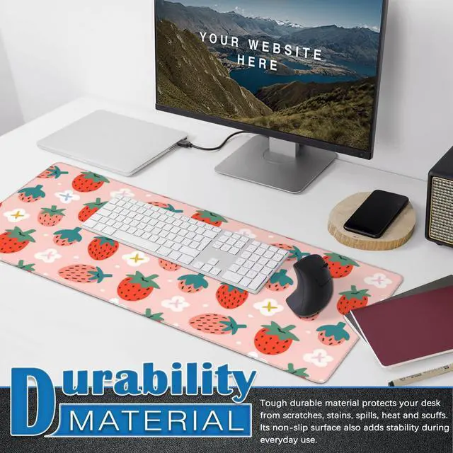 Cute Strawberry Print Desk Mat Mouse Pad,Large Gaming Desk Pad Mousepad,White Daisy Floral Computer Laptop Keyboard and Mouse Mat,Desktop Protector Mat for Women Girl Office 31.5x15.7 in
