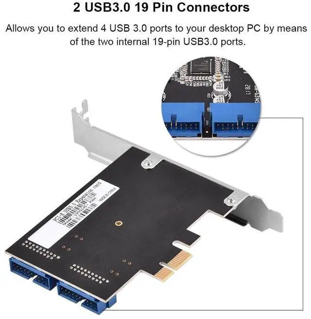 Pin Connectors: Allows you to extend 4 USB 3.0 ports to your desktop PC by means of the two internal 19 pin USB 3.0 ports. ^^ High quality master