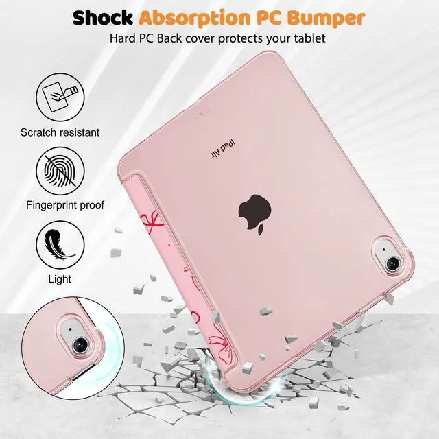Lepeoac Case for iPad Air 11(M3 2025/M2 2024) 7th 6th, iPad Air 4 & 5 10.9 inch 5th 4th (2022/2020) Case, Slim Stand Cover with Hard Translucent Back Shell Auto Wake/Sleep, Pink Bows