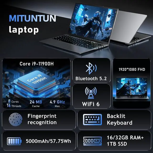 High-performance processor, designed for high-load tasks: This laptop is equipped with an i9-11900H processor with a frequency range of 2.5GHz to 4.9GHz, designed to handle high-load tasks with ease. Whether you're running multiple office applications simultaneously, running complex design software, or enjoying high-end games, it delivers smooth and reliable performance.