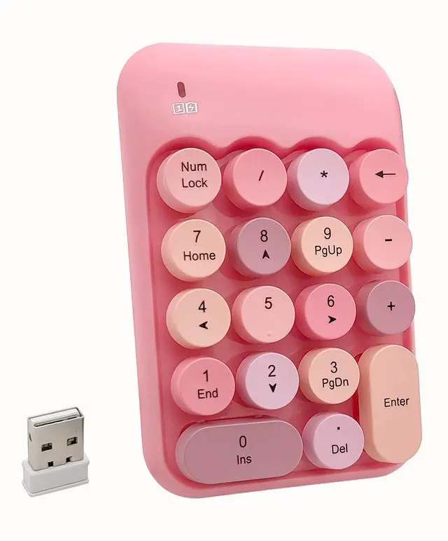 Use: 2.4G wireless transmission, dongle plug and play, just plug the USB receiver into your computer and install 1 AA battery (not included) on the back of the keypad to start typing ^^ Comfortable to