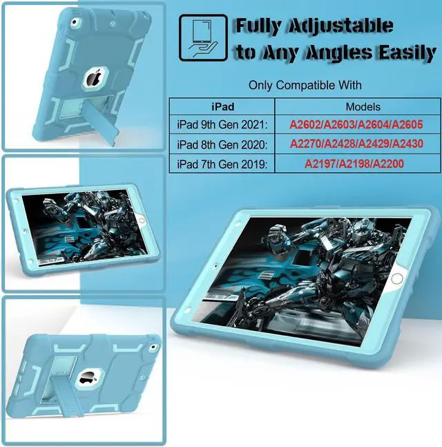 Number: A2602/ A2603/ A2604/ A2605/ A2270/ A2428/ A2429/ A2430/ A2197/ A2198/A2200), [Without Screen Protector]. ^^ Exclusive Design The appearance design makes you associate with the hero of animation. Fans can imagine heroic battling villains in a fight for the fate of the world with this ipad 9th generation case figure. Muscle mass design makes it more protective and easy to hold. ^^ Upgrade KickstandiPad 8th generation case built-in sturdy kickstand, extremely convenient and easy to push out and back in. Allows easy access to your favorite shows, movies, and games while on the go. ^^ Drop ProofThree Layer design combines a premium shockproof silicone outer layer with a hard PC cover; flawless ipad 10.2 case and withstands accidental drop, bump and shock damage. ^^ Ideal Tablet AccessoriesFlexible to use your iPad 7th generation during work, studying or journey, great ideal, students, teachers, or engineers. It is the best choices for husband, boyfriend, family and friends.