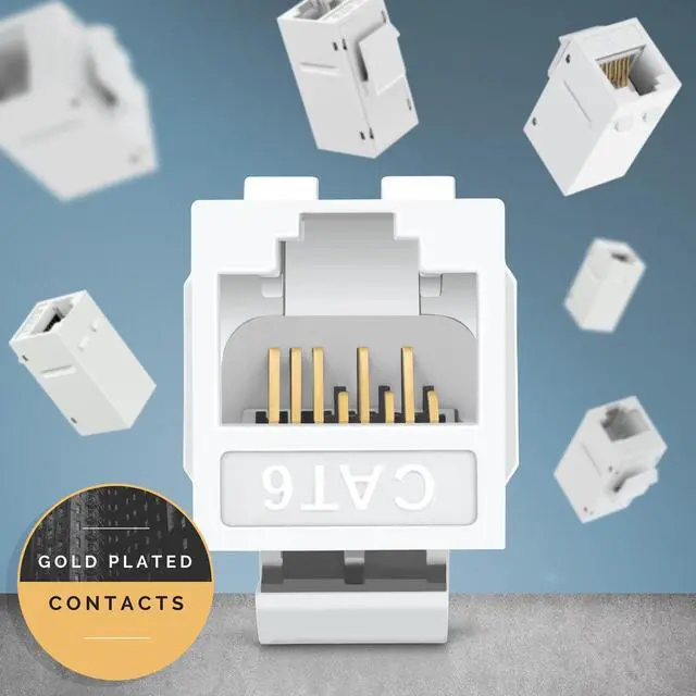 Slim Size - Everest rj45 Keystone Coupler fits into standard sized keystone wall plates and blank keystone patch panels. Snaps smoothly into place and easy to pop out. It is a cat 6 keystone coupler but also compatible with cat5e ethernet cable ^^ Quality Build - Gold is a good conductor and does not rust. This rj 45 coupler has gold-plated contacts for superior signal transmission. Material for the housing is high impact ABS plastic which is fire-retardant ^^ Ethernet Cable Extender - Simply use this two-line coupler to extend two short cables and enjoy high-speed data transfer, true-speed internet, with no signal loss.
