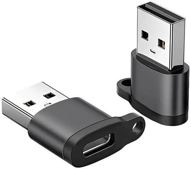 USB to USB C Adapter 2 Pack, Type-C Female to A Male Car Charger Converter for New iPhone 16 Pro Max Plus 15 14 13,Apple Watch 10 9 8,Airpods,iPad Air 5 Mini 6 7,Samsung S24 Ultra (Black-Rope)