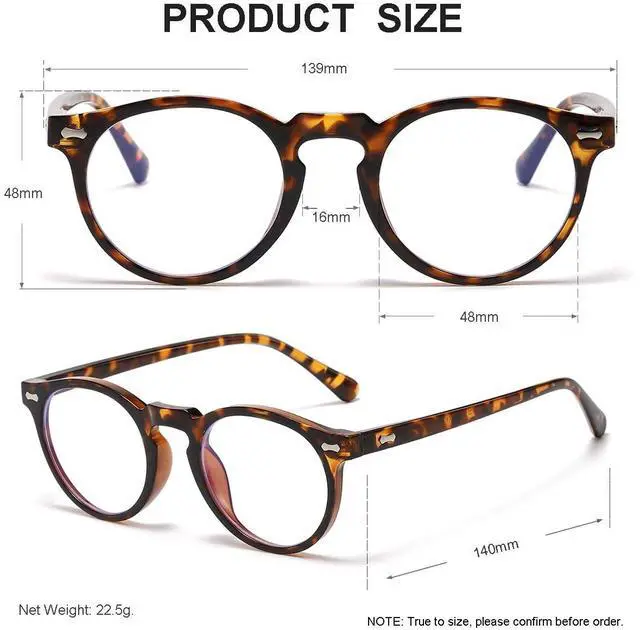 DescriptionProduct Features1. Vintage round frames are made of high-quality metal and PC materials for durability that will set you apart from the crowd. 2. Unisex style for both men and women. 3. Integrated nose pads fit for all nose shape. 4. All our lenses have a hard-protective coating, which makes them scratch and impact resistant. 5. A series of frame colors are available for this style like black, brown, white, grey, tortoise. BLUE LIGHT BLOCKING GLASSES COMPARE TO NON-BLUE LIGHT BLOCKING GLASSES1. JOVAKIT's blue light blocking Glasses can protection your eyes.