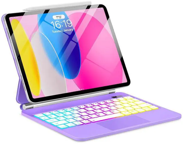 TabletKeyer Magic for iPad A16 11th/10th Generation Case with Keyboard,Trackpad Floating Rainbow Backlit Keypad with Cantilever Magnetic Cover for iPad 11-inch 2025/10 Gen 10.9" 2022 Purple