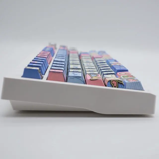 GREAT QUALITY PBT KEYCAPS The dye sublimation PBT keycaps provide durability,using advanced dye sublimation technology making the pattern/letter not fade.Which is not easy to be oiled and grainy, and the dye sublimation process is not easy to wear off.