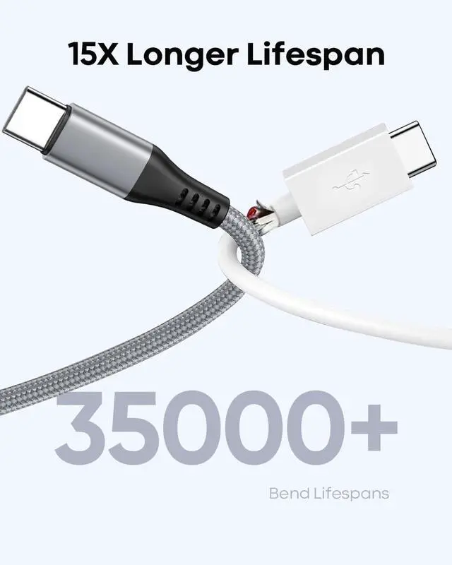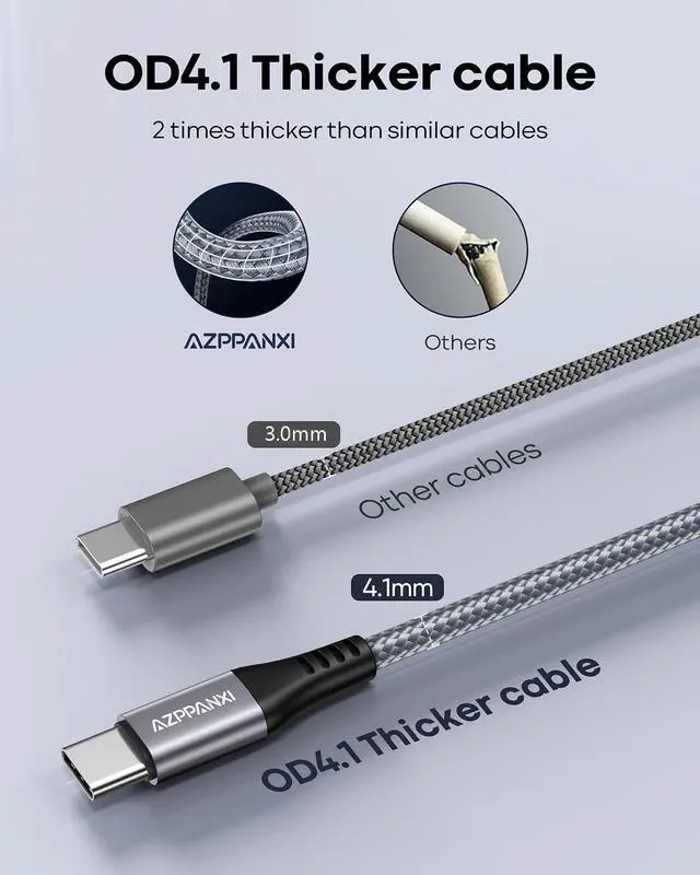 Hey there, tired of constantly replacing flimsy USB-C cables? Our AZPPANXI 20ft type c to type c cable boasts a beefy 4.1 millimeter diameter, surpassing market standards. (a cable with a diameter so beefy it puts the competition to shame! ) With ample copper wiring and top-notch nylon braiding, say goodbye to the hassle and expense of frequent replacements. (Rest assured, you're investing in a 20ft usb c cable that's built to last. ) ^^ [20FT (6M)