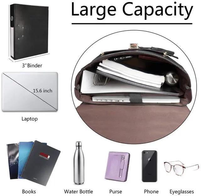 2 main compartments: 15.6 inch computer compartments, iPad pocket and the other compartment. 2 open pockets and 1 zipper closed pocket which is in the front wall of the main compartment. 1 rear zipper closed small security pocket that hold your value goods. ^^ The women backpack has plenty space to hold stuff for daily necessities such as 15.6 inch laptop, 15inch computer, iPad, binder, kindle, books, notebooks, A4 files, cell phone, calculator, umbrella, wallet, clothes, cosmetic, a lunch boxes and so on. ^^ Vintage simple styling with fashion detail. Rotating buckle closure on flap, two front detachable tassels decoration, top-handle. adjustable leather and ribbon mixed shoulder strap ^^ The classic backpack is great fit for college, travel, weekender, shopping, gift and daily life..