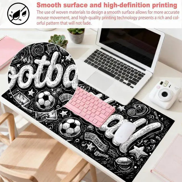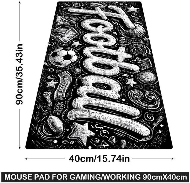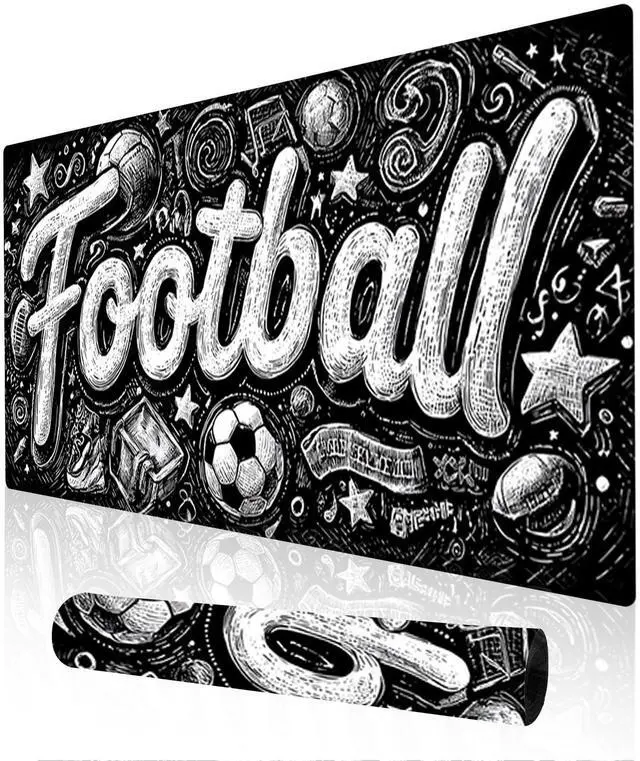 Features football graffiti artwork, adding a dynamic and sporty touch to your workspace while providing a large, smooth surface area for better mouse movement. ^^ Large size design ( 35.4 x 15.7 x 0.1IN ) offers ample space that fits both keyboard and mouse, ideal for football fans or those who enjoy energetic sports aesthetics. ^^ Long - lasting anti - fray rugged stitching surrounds the mouse pad, enhancing durability to preserve the lively football graffiti design. ^^ Ultra - smooth surface, as vibrant as the energy of football in the artwork, ensures exceptional tracking performance and aiming precision with optical and laser technology.