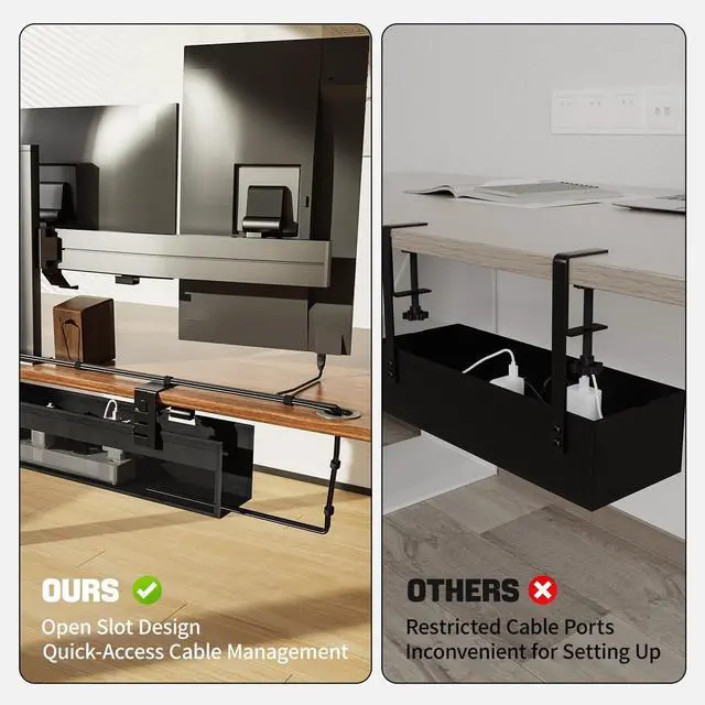 ^^ PREMIUM FABRIC MATERIAL: Nonkky cable management tray is made of premium fabric material that is dust-resistant and fire-retardant, sturdy iron bar support with a load capacity of 40LBS, maximizes the safety of the internal wires and keeps dust out. ^^ EASY INSTALLATION (2