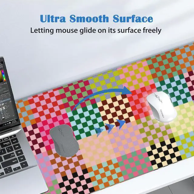 Retro Colorful Checkered Mouse Pad Gaming Mousepad Desk Mat,Smoothing Fabric Mousepad for Fluid Control,Ultra-Stable Non-Slip Rubber Base Mouse Pad,Stitched Edges(31.5x15.7 in)
