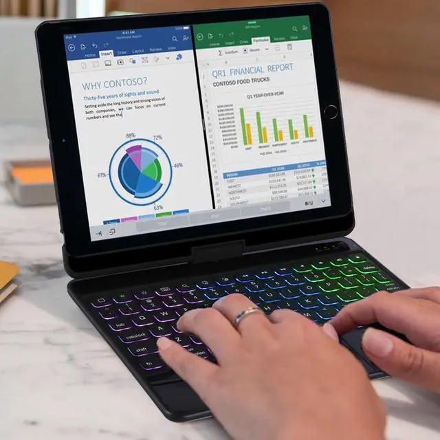 EXPERTLY CRAFTED: the case features a smart 10.2 -inch island keyboard attachment for optimal typing - ideal for taking fast and concise notes on the move. Rotate the screen up to 180 and 360 view angle to effortlessly display your work presentation or watch your favorite show ^^