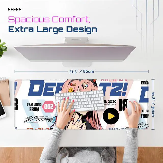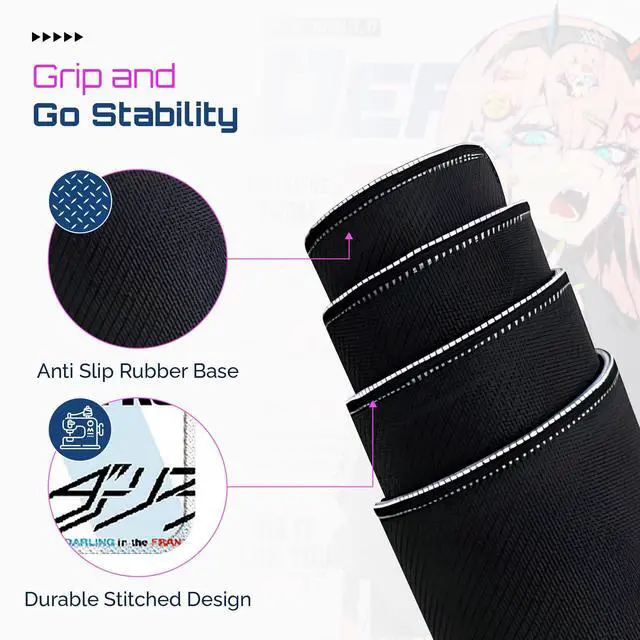 ^^ Non-Slip and Water-Resistant Base The non-slip rubber base keeps the mouse pad securely in place, preventing it from shifting during intense gaming or fast-paced work. Additionally, the water-resistant coating makes cleaning easy, allowing any spills or stains to be quickly wiped away with water or a damp cloth. ^^ Invisible Stitched Edges for Durability The invisible stitched edges not only prevent edge damage from long-term use but also maintain the aesthetic appeal of the anime girl design. This feature helps extend the lifespan of the mouse pad and ensures it remains visually appealing over time.
