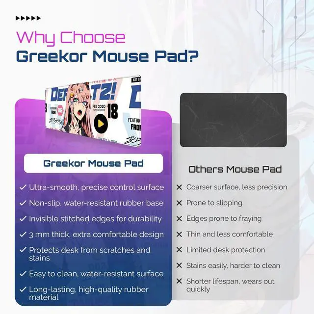 ^^ Additional Desk Protection Beyond providing an ideal surface for your mouse, our large mouse pad also serves as effective desk protection, guarding against scratches, stains, and general wear and tear. Its the perfect accessory for your office or gaming area and makes an excellent gift for friends and family who are gaming enthusiasts.