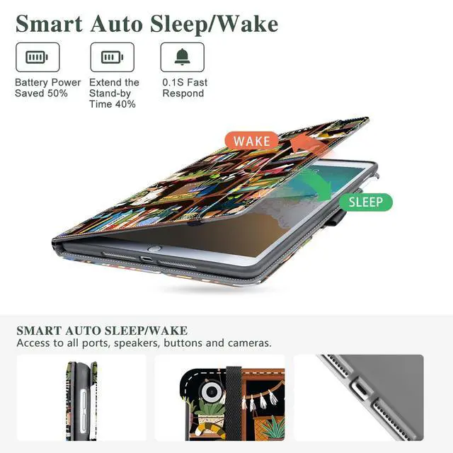 ^^ Smart Auto Sleep/Wake: Vimorco iPad 9th Generation Case come with built-in magnetic strip ensure it automatically wakes your iPad when opened and puts it to sleep when closed to save battery life.