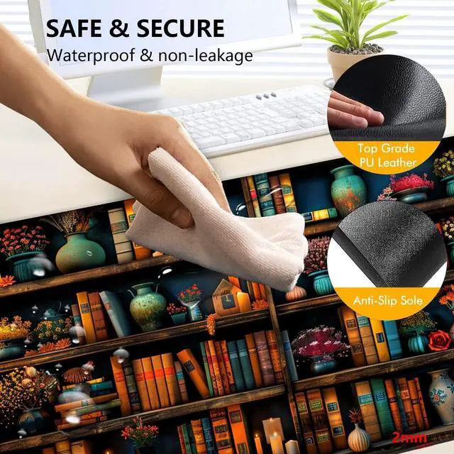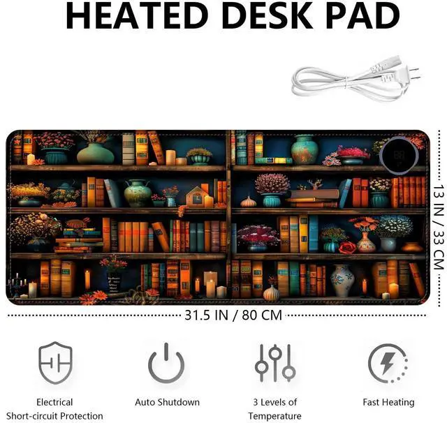 Heated Mouse Pad with 3 Levels Heated & 3 Hours Auto Shut-Off Mouse Pad for Warming Hands in Office Home, 31.5" x 13"Large Safe Desk Mat Hand WarmerVintage Colorful Bookshelf