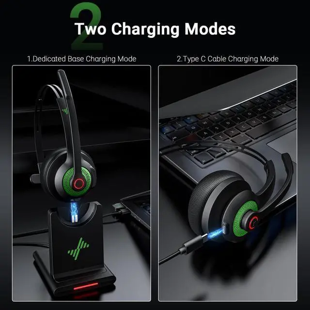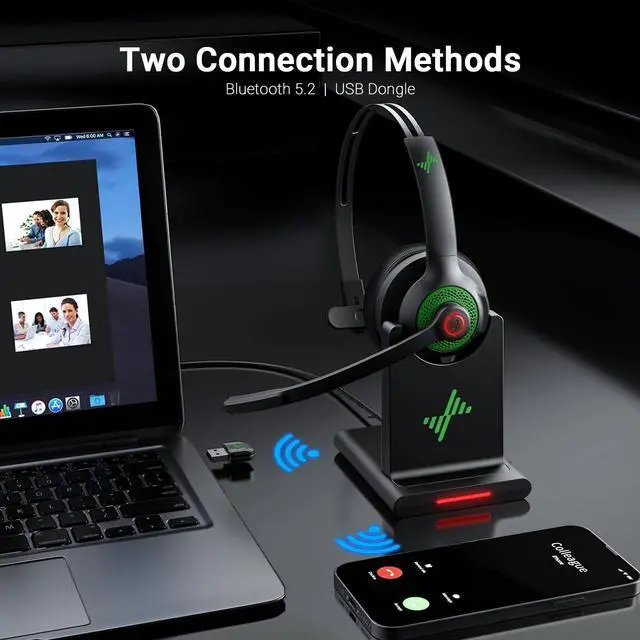 Wireless Headset with Mic for Work, Clear Call, Bluetooth 5.2 Headphones with USB Dongle & Mic Mute Function, Special Charging Base, Applicable to PC, Laptop, Phone, Android, Zoom, Office