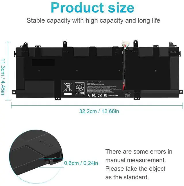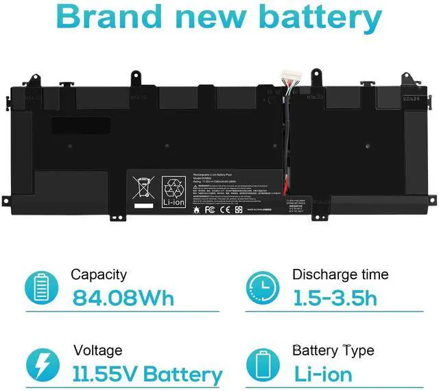 Capacity: 84.08W h; 100% brand new from manufacture. Grade A cells ensure fast charges and low power consumption.